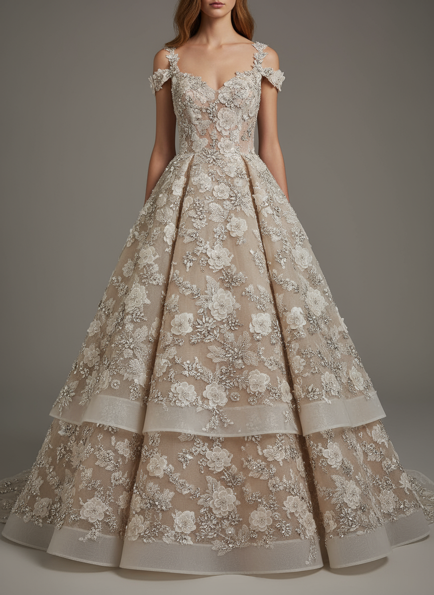 • Hand-stitched onto wedding dresses as an elegant 3D embellishment