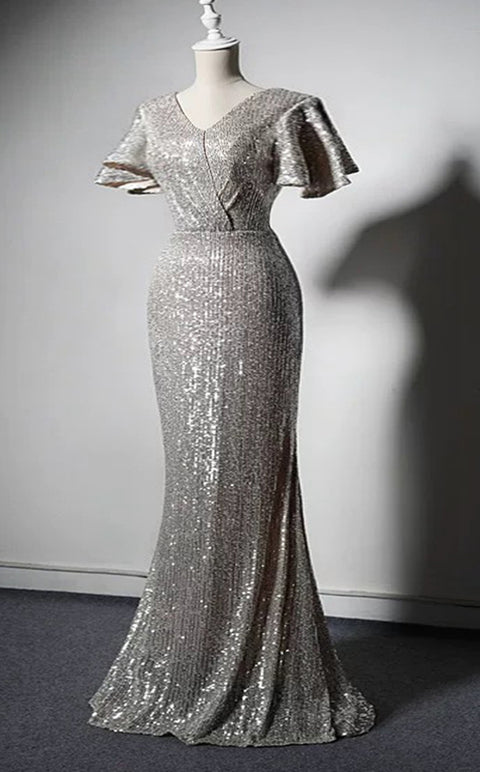 Plus Size sexy sparking champagne sliver sequins mermaid prom dress 2020