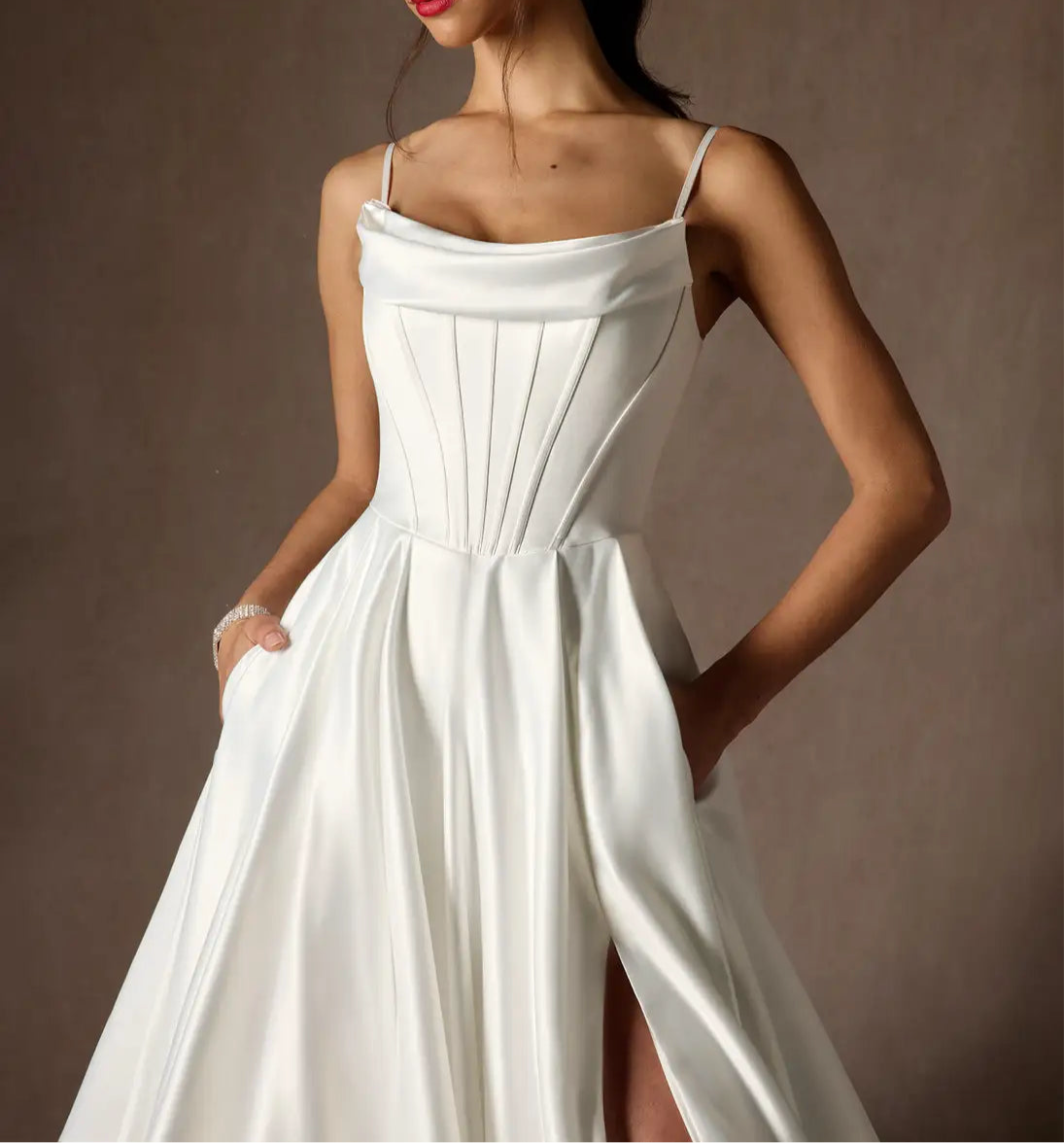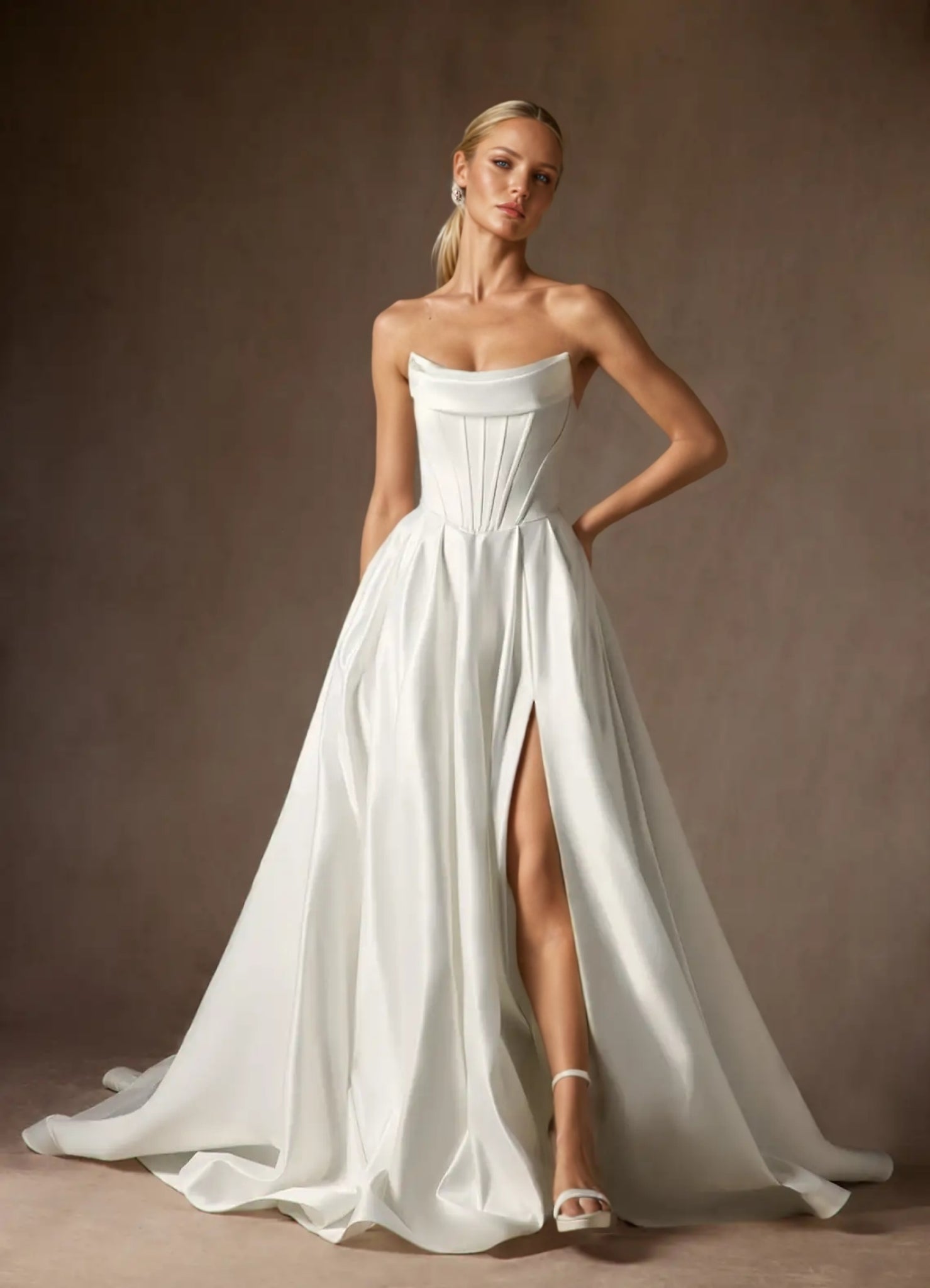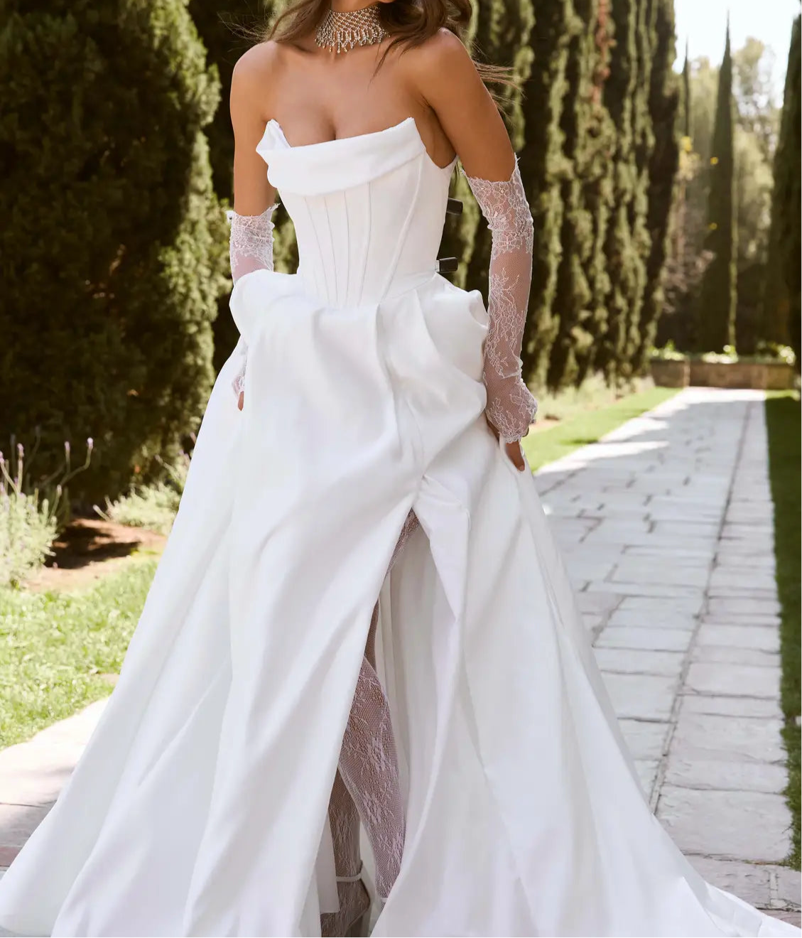 Chic and sexy corset top mikado wedding dresses with slit skirt 2025 sweeping train