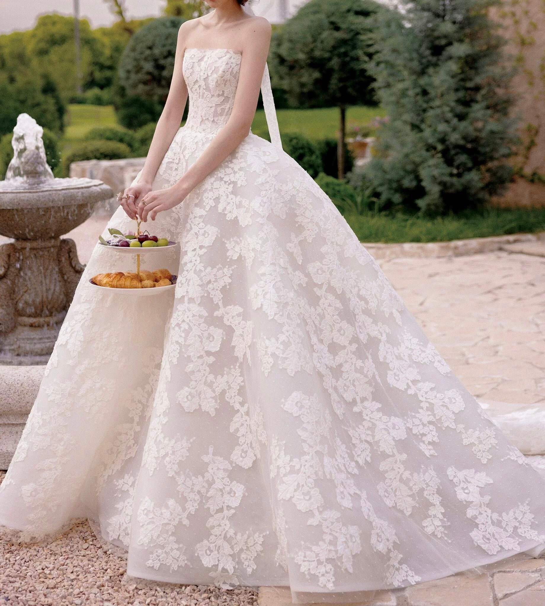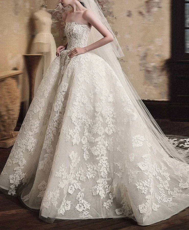 Customization chic strapless lace appliqués ball gown skirt wedding dresses 2025