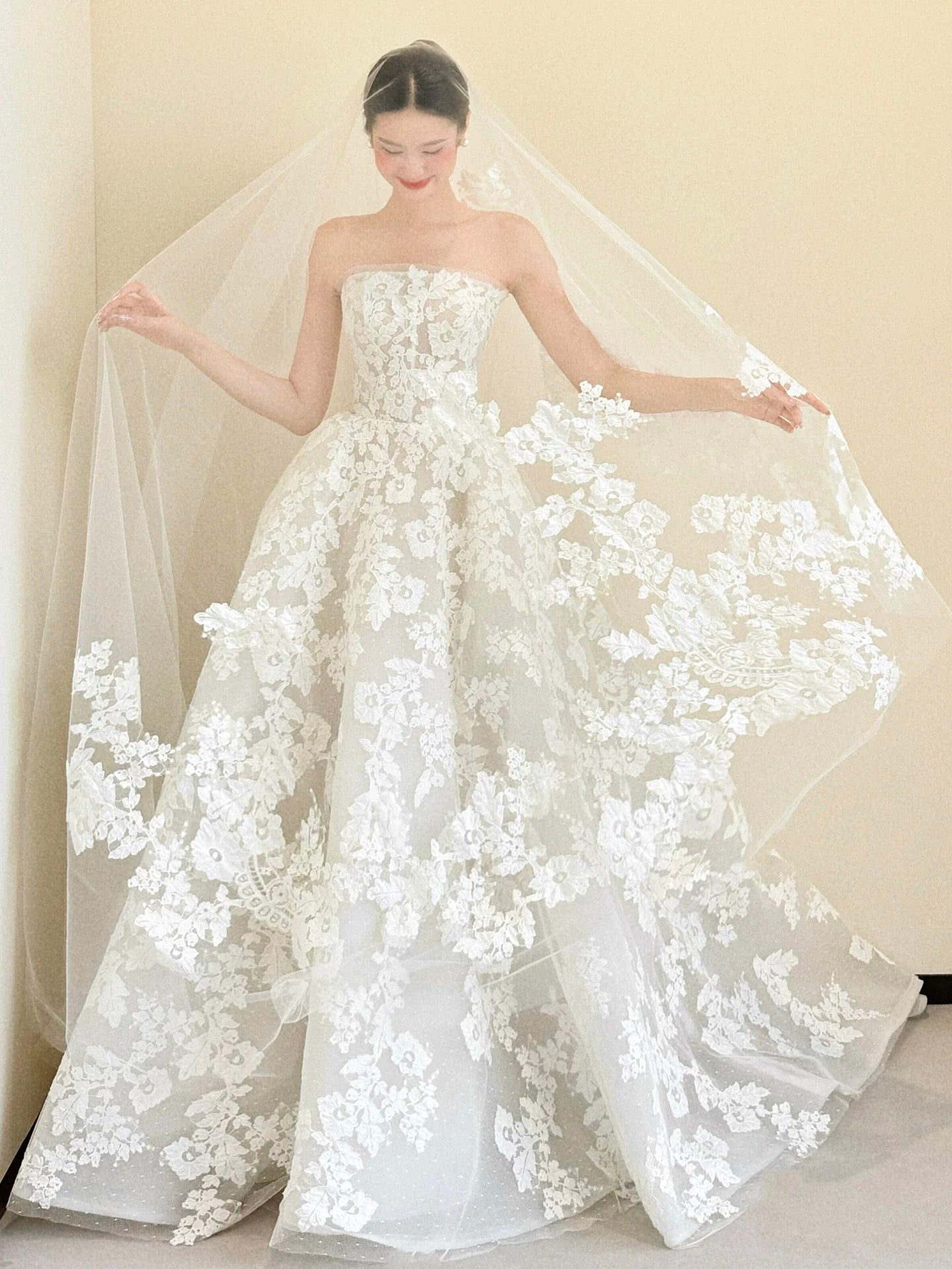 • ✔️ Elegant strapless neckline for a timeless bridal look