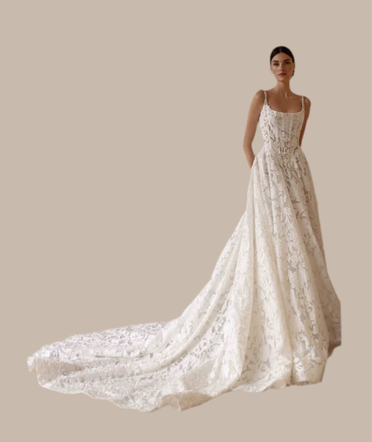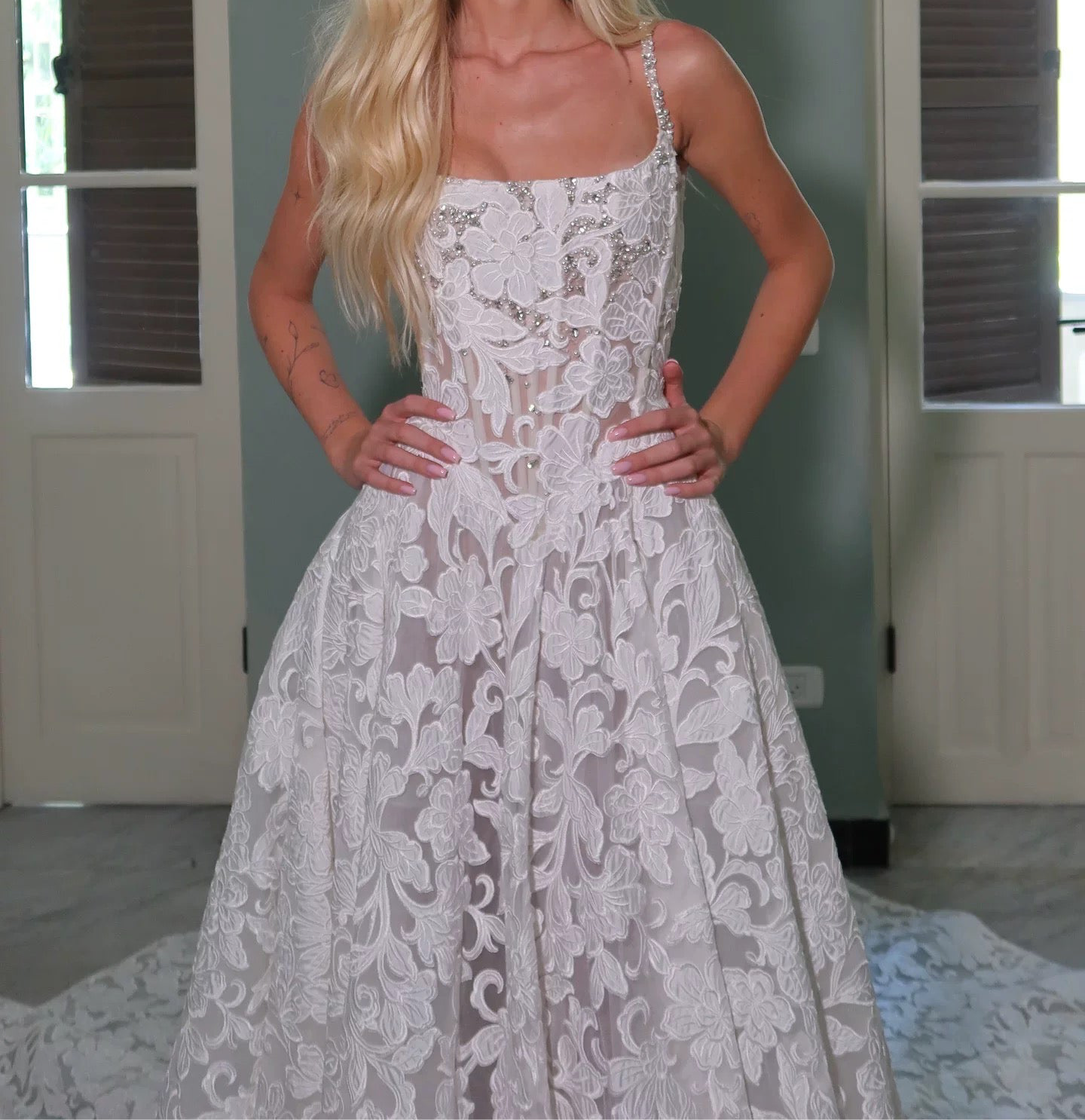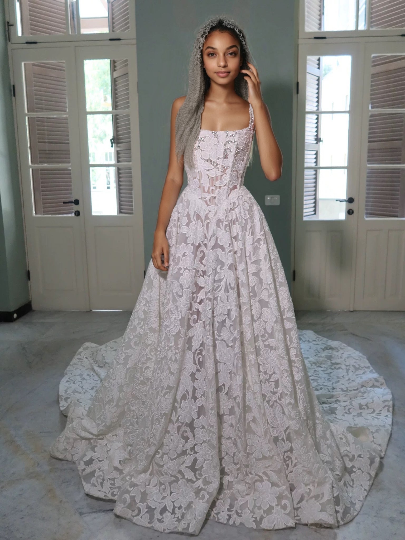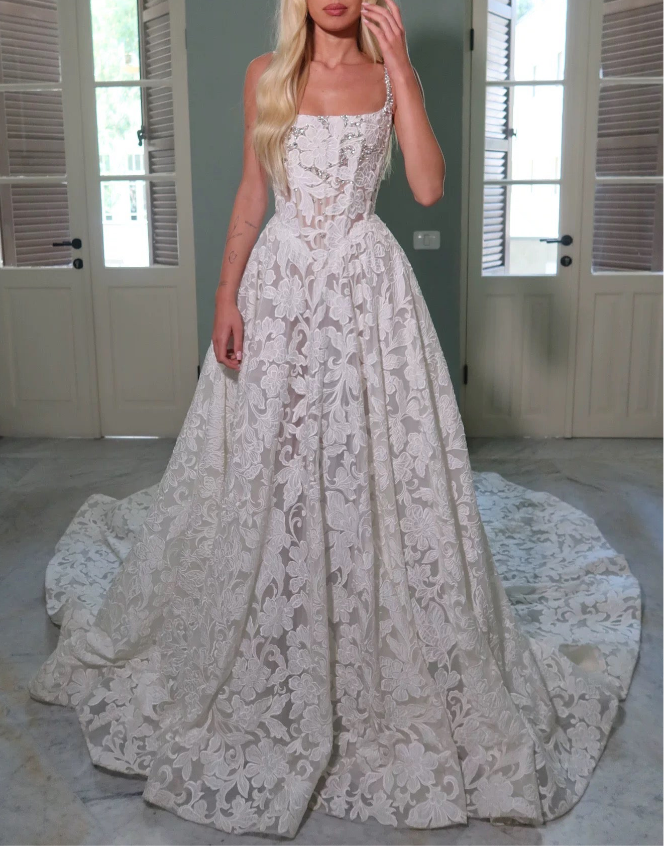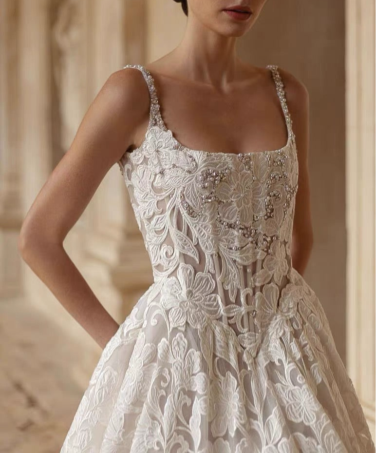 - Embellishment: Lace appliqués+Rhinestones +crystals+Pearls