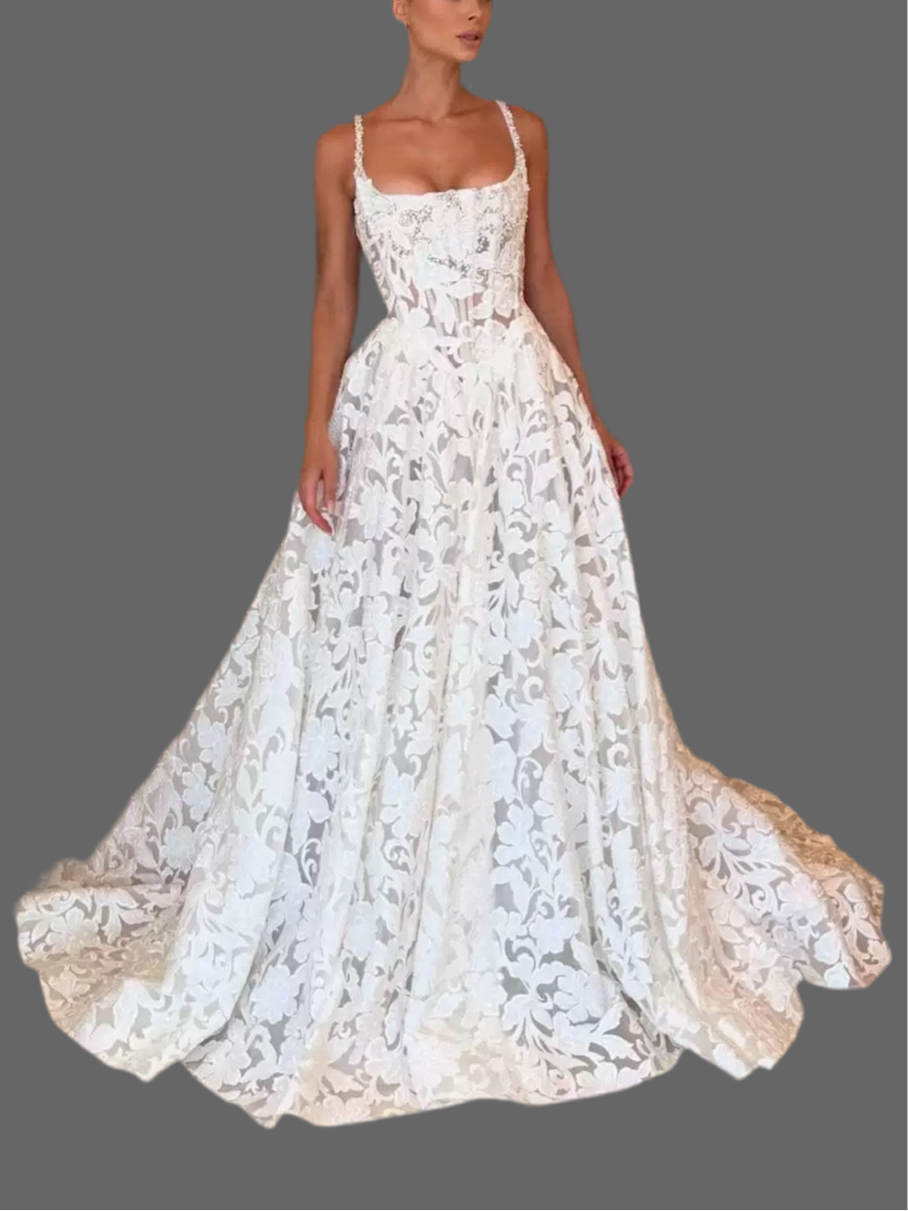 Personally customized bodice corset brocade lace over ball gown skirt wedding dresses 2025 sweeping and cathedral length