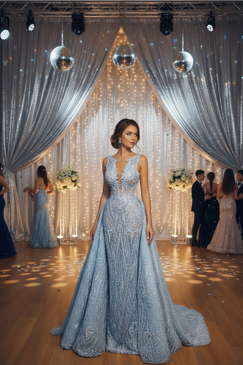 Classic custom made sky blue prom dress heavy beaded 2026 Spring